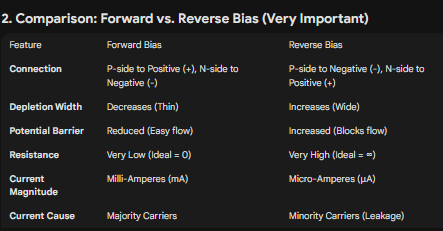 Depletion Region: A layer formed near the junction containing immobile ions (Positive ions on N-side, Negative ions on P-side). It is void of free charge carriers.